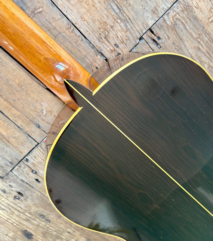 There are two repaired cracks to the back, expertly cleated by luthier Stephen Frith. He also set the guitar up and the neck and action are as to be expected.