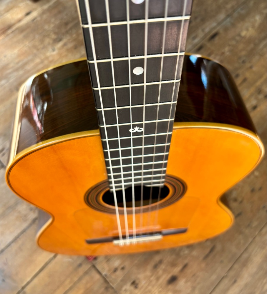 The influence of Ramirez is apparent in this beautiful guitar. It is a classical although it has golpe plates as well. The craftmanship is second to none. The sound is magical, sweet, balanced, round and very sensnitive. The neck is very comfortable and easy to play.