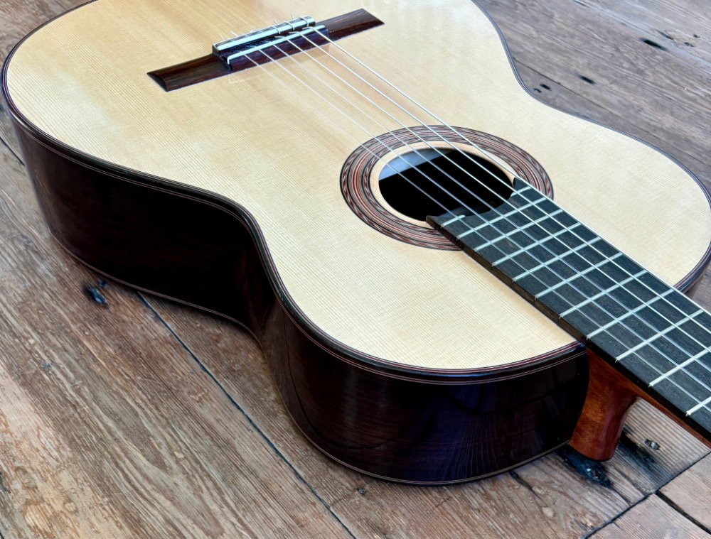 You can hear in this clip (of a very similar guitar also from 2019), the warmth and fine balance across the range of these sensitive instruments. Roberto has a number of concert artists playing his guitars and he has obviously noted their desires regarding neck comfort and ease of playing.