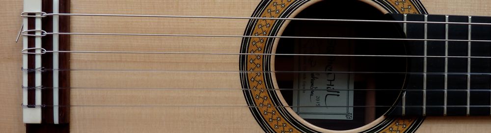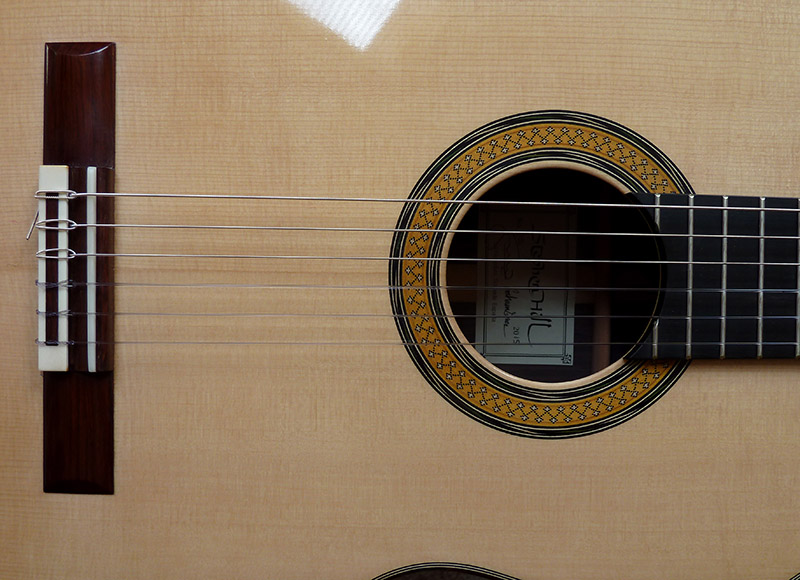 These guitars are built with the help of gifted artisan luthiers in Hill's workshop near Granada Spain. They are actually very much like the guitars he made early on in his career with standard Torres strutting with a light construction. They have an easy response and are very comfortable to play. Available from Gap Guitars in Northampton 07834 923474 or directly from Maestoso Music in Brighton Sussex 01273 882862
